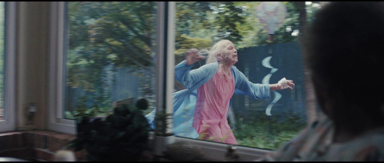 The film throws out multiple potential explanations for its horror. At times it leans into mysticism and witchcraft, especially through the character of Aunt Gladis. In other moments, it hints at science fiction, with visuals like the holographic weapon appearing above the house, which strongly suggests either alien involvement or some form of advanced technological warfare. Then there are moments that feel almost folkloric, like the forest sequence, where Aunt Gladis appears in a way that feels more like a supernatural entity than a human being.